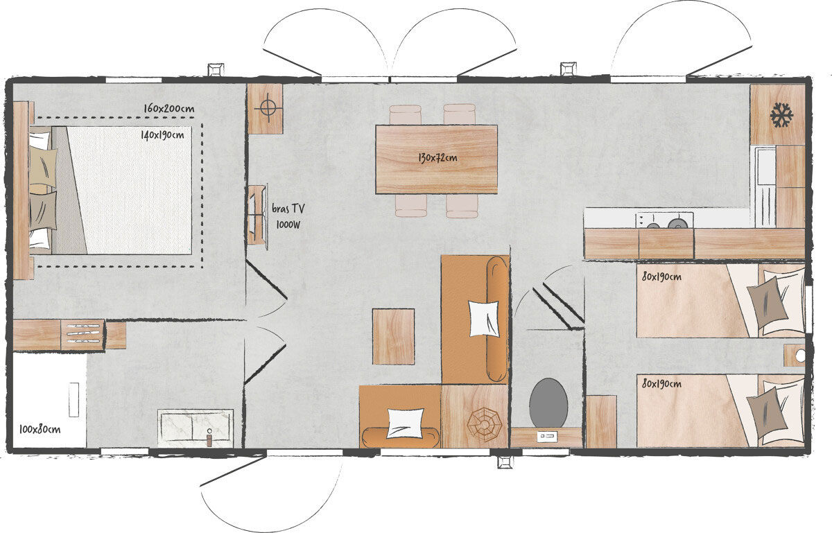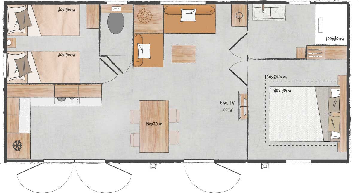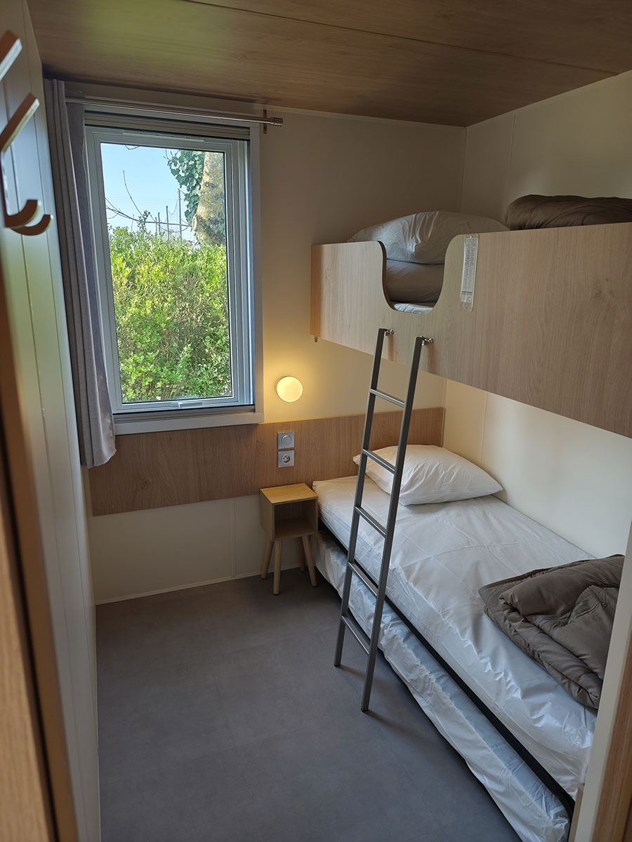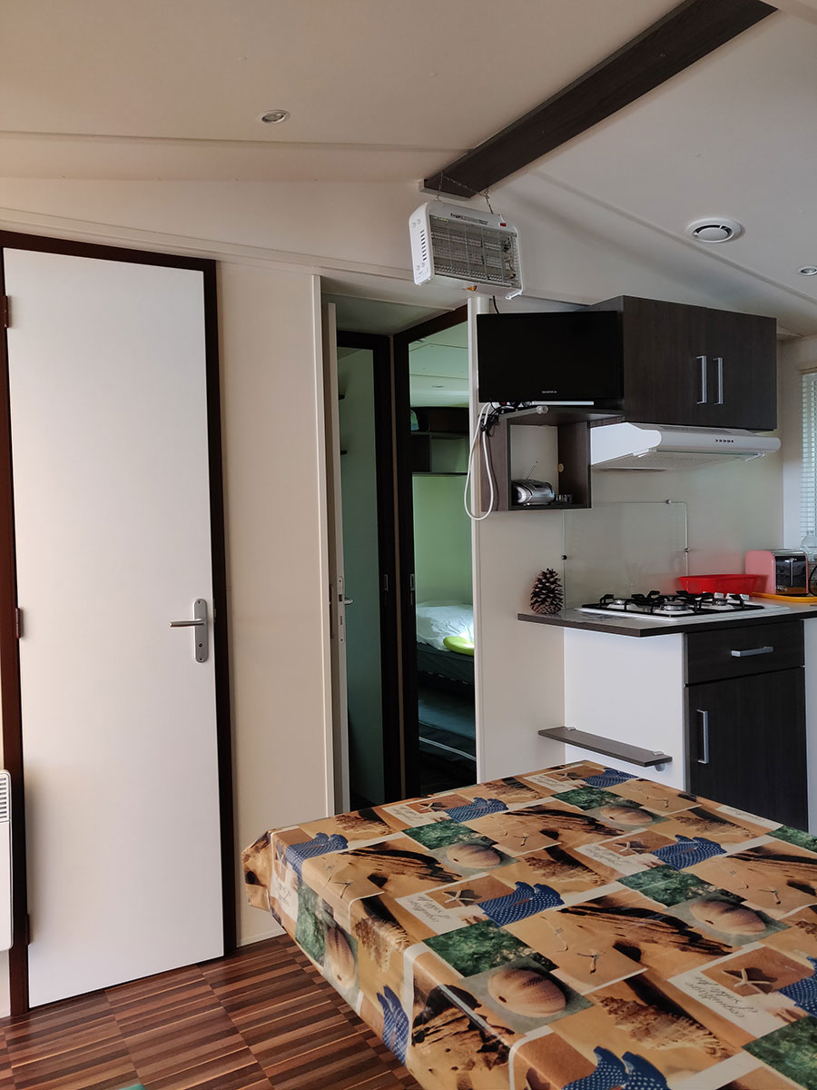 - Tous les Mobil-homes sont équipés d’une télévision et de moustiquaires dans les chambres.